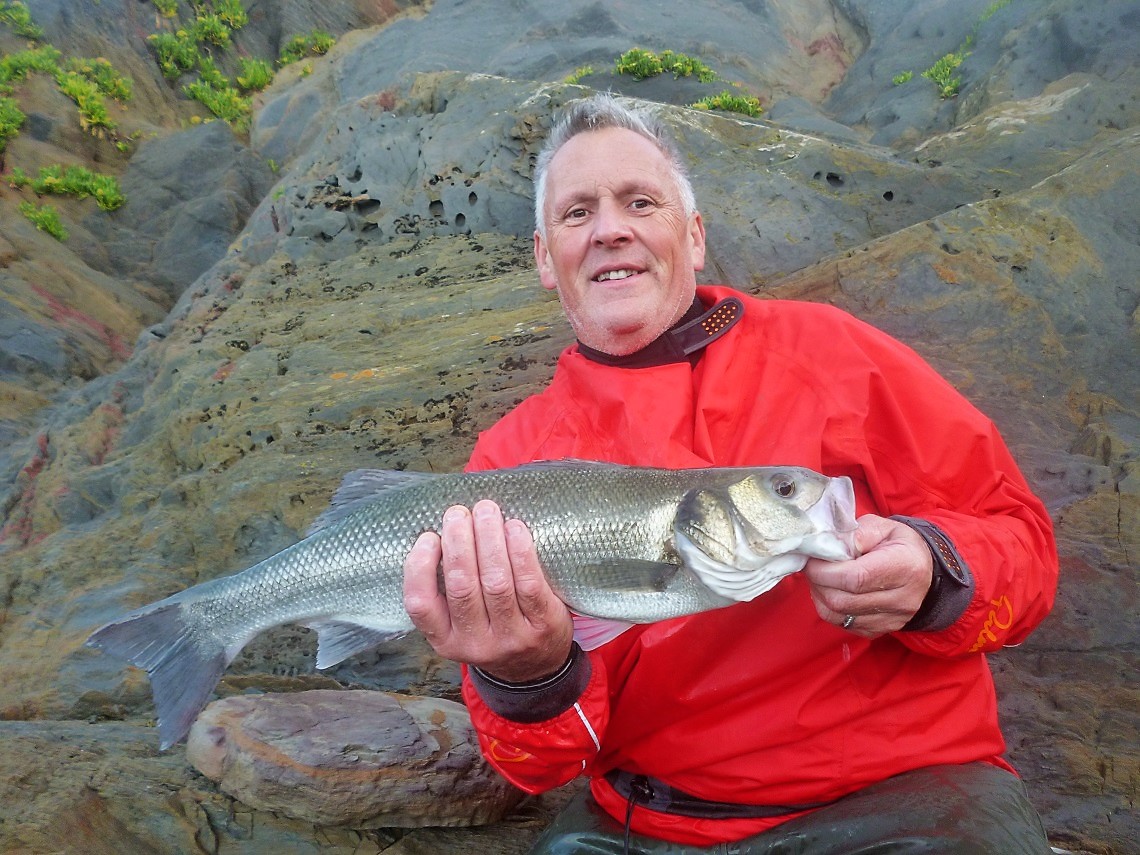 Get in there!!!! It is a real achievement catching a bass of this size from the shore. Even the bright red kayaking jacket (I’d advise wearing dull colours with reflective strips) wasn’t enough to deter this hungry predator from smashing the lure just off Steve’s rod tip.