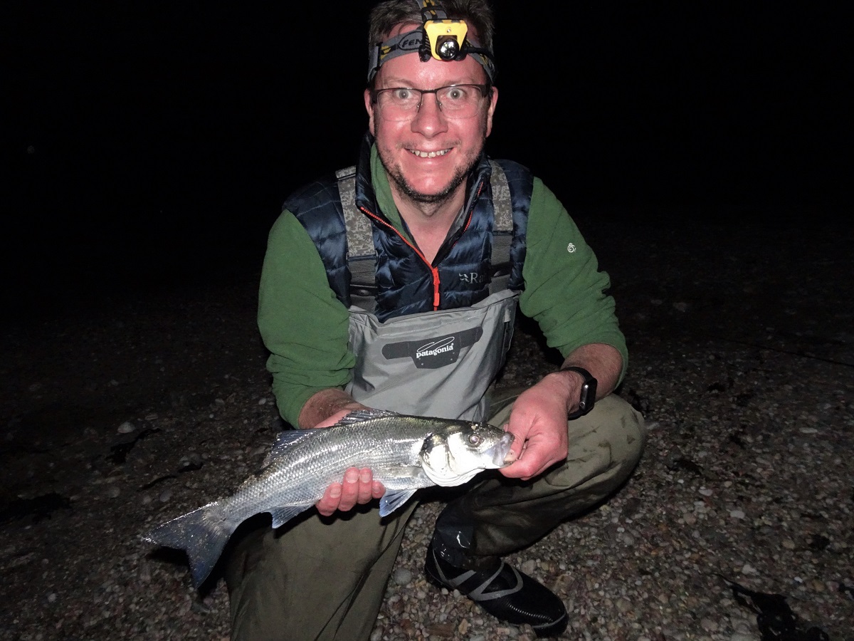 It was giving a good account of itself and at first glance (at distance in the gloom) it looked decent. And as Stuart brought the bass closer to the beach, via the sporadic (rather than continuous) splashes, I was expecting something much larger than what I pulled up the shingle via the leader (to alleviate the risk of the hook pulling).
