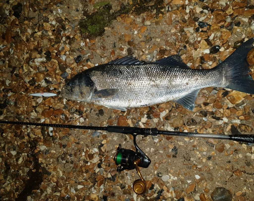 So how have I been getting on with it myself? Blimey does it cast well!! But more importantly, even with that internal weight shifting system incorporated, the lure retains all of the attributes I wanted in the understated original, and most important of all, it still catches fish. Below is a bass in the 3lb+ range that snaffled the MWS prototype during a session when I was casting it way out into a tidal race at the mouth of an estuary, and allowing it to ‘swing’ around in the tide – what a hit it was too!