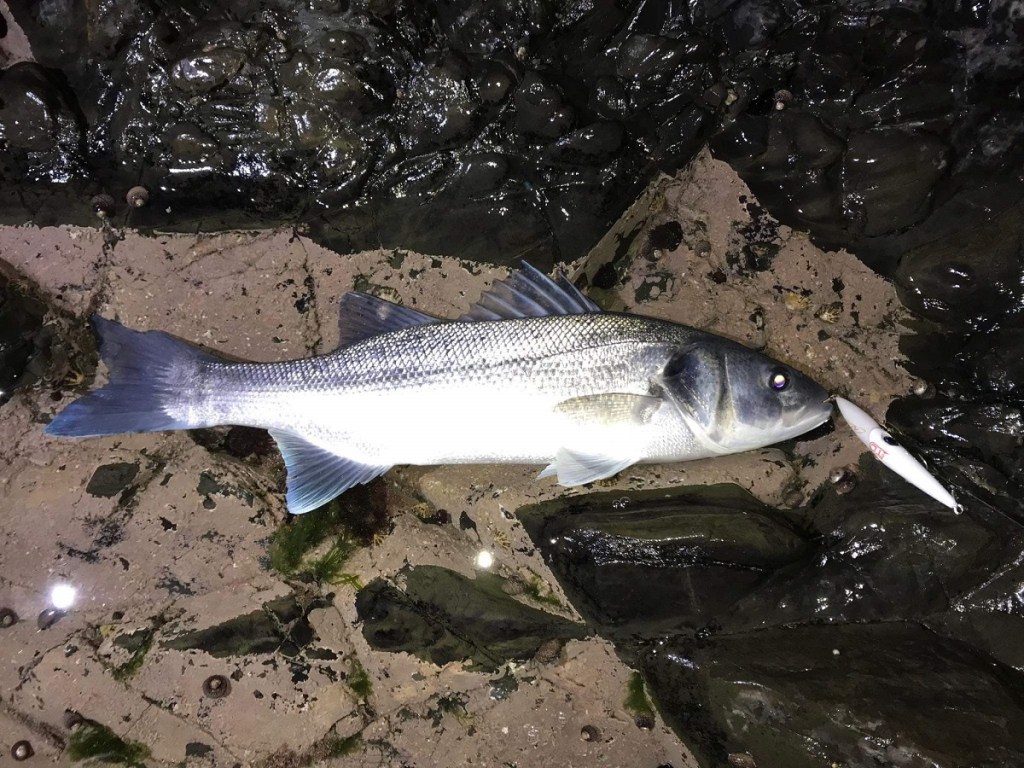 I won’t lie, the scenario I hand in mind when I was hitting the ‘Pay Button’ was a swirling, angry swell, washing up and over large structures of rock and within a fierce tide race. So far though, only the latter setting of a significant tidal flow and ‘popping’ the Feed Popper and the exceedingly deadly hybrid surface slider come popper that is the magnificent Whiplash Factory Spittin Wire has reaped rewards – even in the pitch black as you can see below.