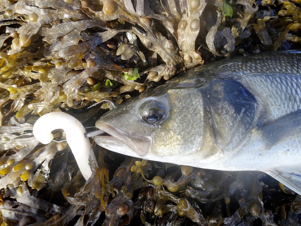 To lose a bass that, as my client (Michael) described it, “felt like I’d snagged the lure on a rock when it just stopped, but then the rock began to move!” whilst retrieving a weighted, white OSP DoLive Stick in darkness, over some of the tastiest reef you can imagine wasn’t bad enough, the following night it happened again! This time, after being hooked on the white Paddle Tail version of the Savage Gear Gravity Stick and nearly dragging him into some very dense weed, under the beam of my headtorch, as I waded in with the net, what was most certainly a bass in the 6lb range shook it’s head on the surface and was gone into the night – gutted doesn’t cover it!