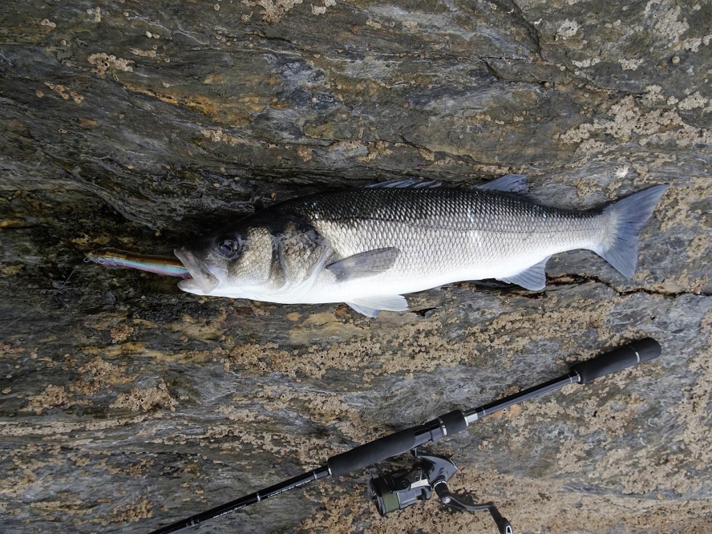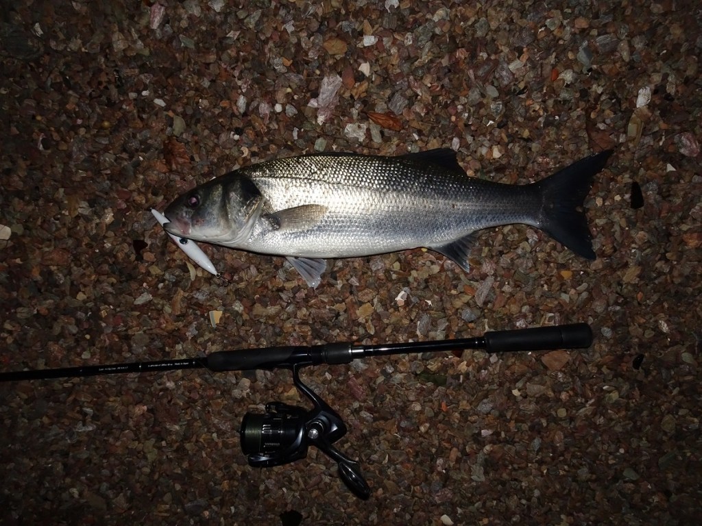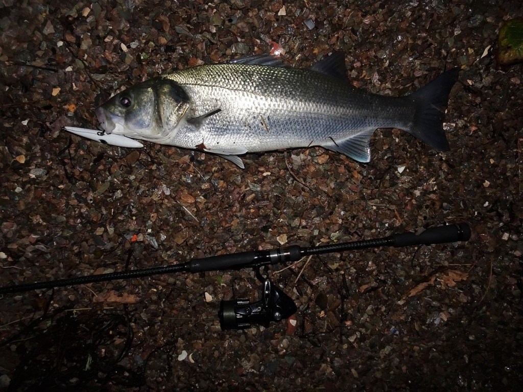 With the imminent release of my Marc Cowling Signature Needlefish I was especially eager for the Gales and downpours we’d endured for the best part of 6 months to relent (sod off more like!) so that I/we could all head out fishing! Once again, a 48 hour lull between low pressure systems allowed me to eek out the tiny bass below on the 12th March, during an evening when someone who has become a good ‘remote friend’ of mine (Mark Cooper in the Channel Islands) sent me a short video and a photograph of the bass he’d recently caught on the MC Needle’ in daylight (also below):