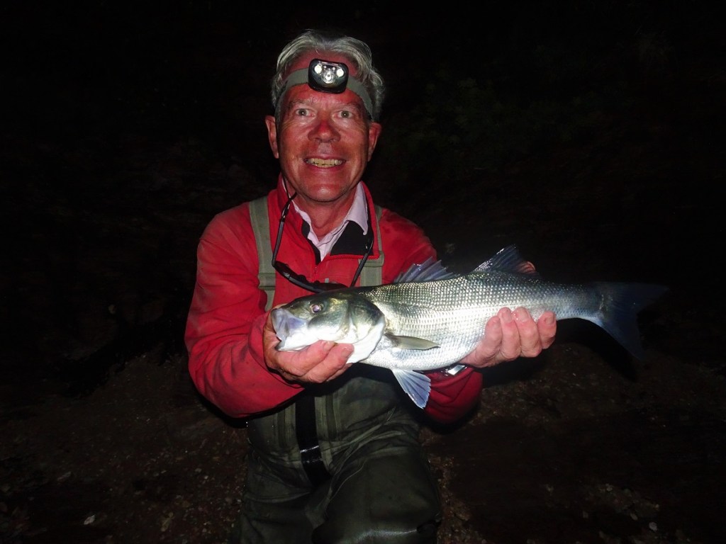 There was one particularly sultry evening out on the open coast however, when after a special day spent swimming and playing on the beach (to the extent that I was almost too knackered to go fishing!) that I struck gold – or rather an awful lot of silver! You can read the full depiction of what is a rare sequence of events in the Striking it lucky! post I wrote, but in summary I enjoyed one of the finest sessions I’ve ever experienced, culminating in the capture and release (thankfully) of the 70cm+ bass below:
