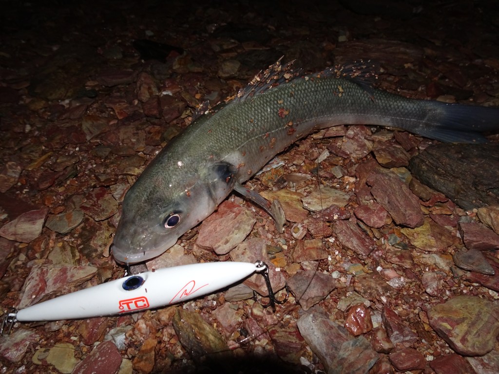 A couple of days later, I had the pleasure of guiding a complete newcomer to fishing, let alone lure fishing for bass. Over the course of those sessions, the phrase ‘duck to water’ simply doesn’t do justice to what my client (Jeff) achieved. I have to admit that it was just supremely satisfying to witness the joy that two of the fish in particular (below) brought to him, the one in daylight yet again snatching the White Dolive Stick. The full story can be read in my post ‘Beginners luck?‘