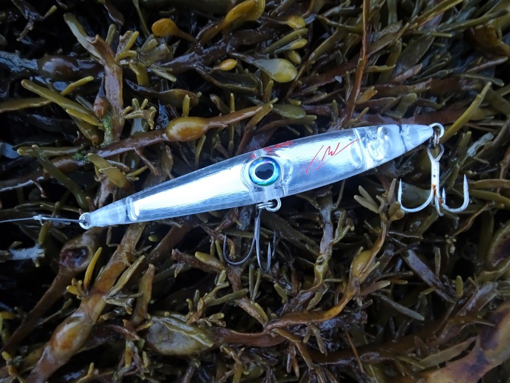 The images below form a gallery of the catches I achieved on the prototype above (I had to be very careful not to lose it as it was the only one I had!) from a variety of settings: beaches, rocks and estuaries, both in daylight AND darkness. Moreover, you’ll no doubt notice the internal ‘Flash Plate’ that I insisted should be a distinct characteristic of the lure (although not all the models boast this for reasons that I will elaborate on later in this post) which is something Tom worked exceptionally hard on to incorporate.