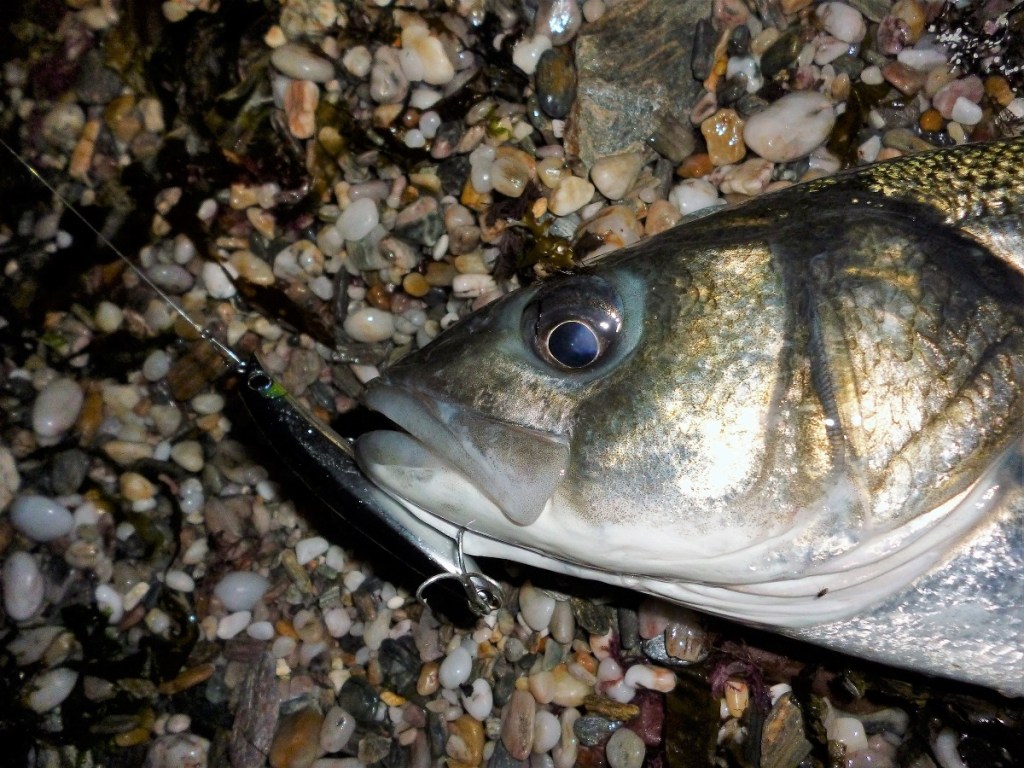 Considering the points above, I have to say that apart from a gently radiating fluorescent lure there isn’t anything out of the ordinary about the excellent captures achieved, in the sense that it is what I would ‘expect’ to certain degree in the conditions we faced. Moreover, there certainly isn’t anything unusual about bass hitting a lure in the backwash only centimetres from your feet – especially at night. But what I would say is that, in the dark in particular, considering the intricate surroundings (the two rock fingers), in does suggest that the bass perhaps followed the lure for some distance into that arena before deciding ‘Yep – I’m having that before it escapes’ – a clear example of where the fish have sensed and picked up on the noise, vibration and movement of the lure long before it came into view perhaps?