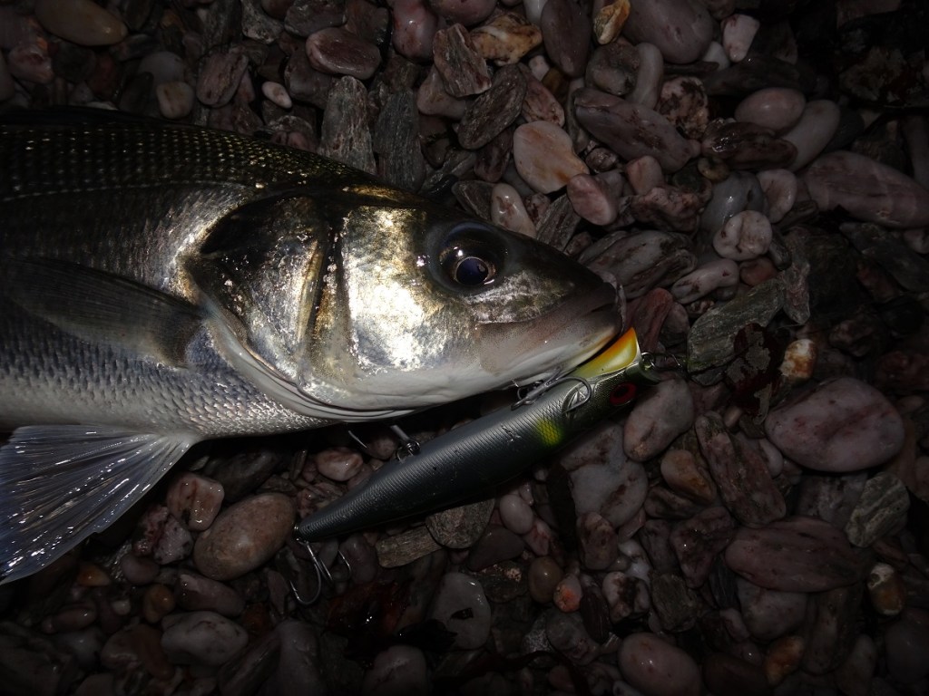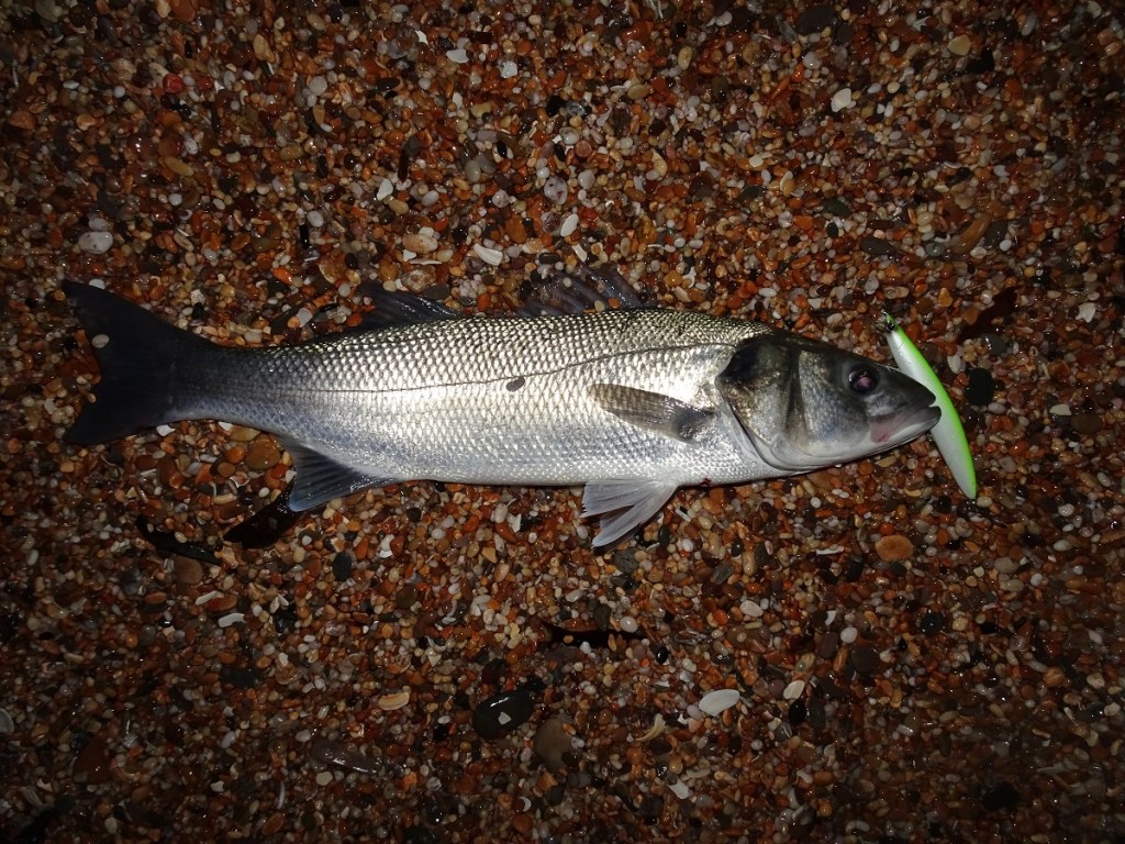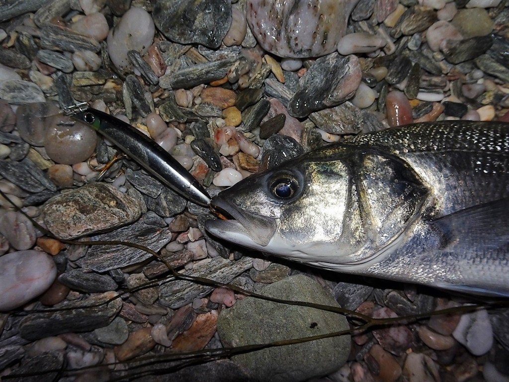 For sure, it could easily have been the preciseness of the venue, and this was undoubtedly a factor during these two sessions, although a number of smaller bass were caught only 30-50m or so along the shingle on the hard minnows by Andrew over these two sessions. But no, the movement, noise and vibration of the hard lures – this, I believe, was the determining factor to these catches, and almost conclusively so when I recall how I asked the guys to utilise various other lures that second night in particular given the far more tranquil conditions.