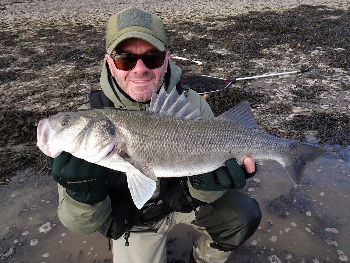 Despite it now being officially winter, on the type of mark my clients were lined up on, they would have been exceptionally unlucky not to catch a bass in these conditions. Sometimes you receive some luck, but more often than not, such is life, you make your own luck via a touch of tenacity or a ‘hunch’ – which is precisely what happened when Ryan decided to attach a lure that he has a great deal of confidence in – a ‘Red head’, White-Bodied Fiiish Black Minnow (here).