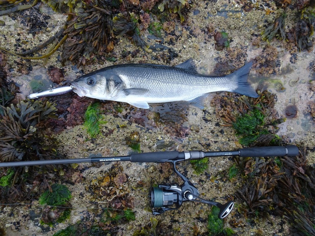 One session springs to mind that actually set the tone for the majority of the season as it happens… I was out with a regular client of mine, in which despite the water temperature still hovering at only just above 10oC, the sea (calm with just a slight chop) and overhead conditions (cloudy and dull) just screamed ‘surface lure’ to me therefore, that’s what went out into the tide race. He was fishing from the rocks, and the seabed was made up entirely of sand, therefore, we were essentially waiting for shoals of fish to move across the seabed via hitching a ride on the current that was moving right of left.
