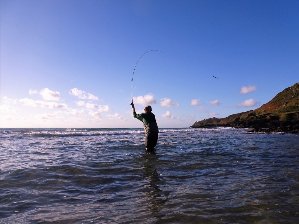 Swinging the lure behind me, it was one of those casts when you compress the rod perfectly and you just know that the lure, whatever it is, is piercing the air like a missile. I reckon I achieved at least another 5m on this particular lob, which despite the gentle fizzing and hissing of a receding wave coming to the end of its own momentous crossing of the ocean, I heard the splash as the lure entered the water.