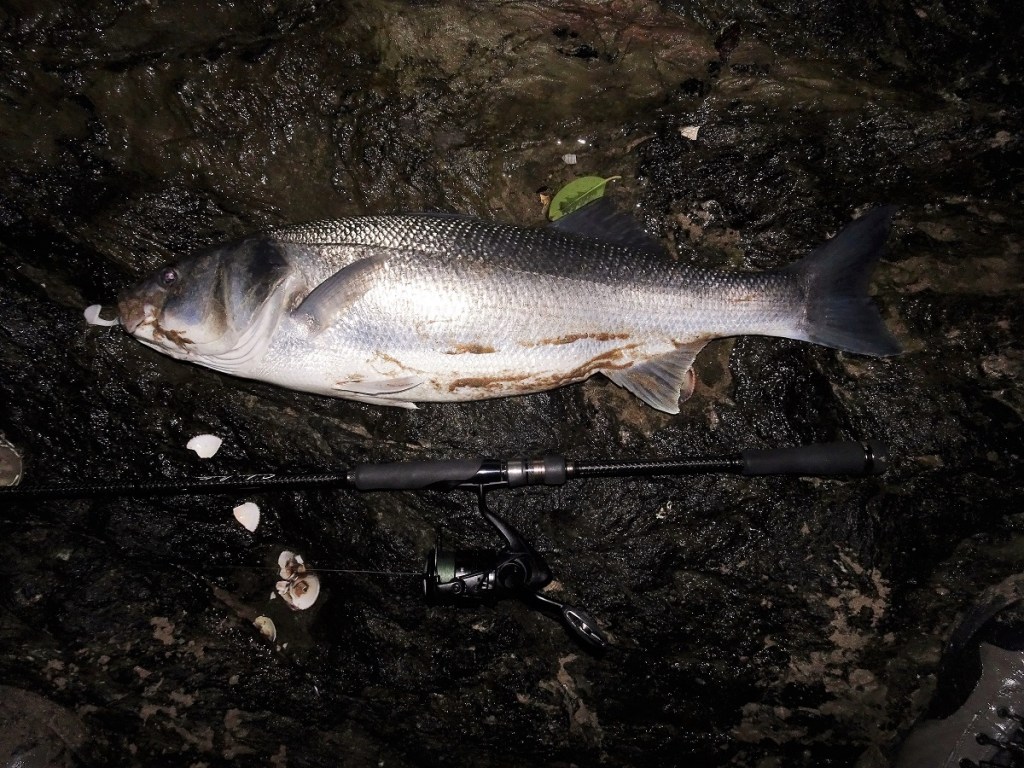 Then one night it happened! On the 17th April 2017 I landed my first ever bass in the dark ‘by design’ by retrieving a white, 6″ Hawg Wild Lure Senko in about 18″ of water over a delicious section of reef that I’d ear-marked as somewhere I thought bass may slink into. I tell the full story in my second book ‘Bass Lure Fishing – A Guide’s Perspective (Volume 1)‘ – how the research, planning and effort finally culminated in what was a rather skinny bass, yet one that is up there with the most consequential catches I have achieved.