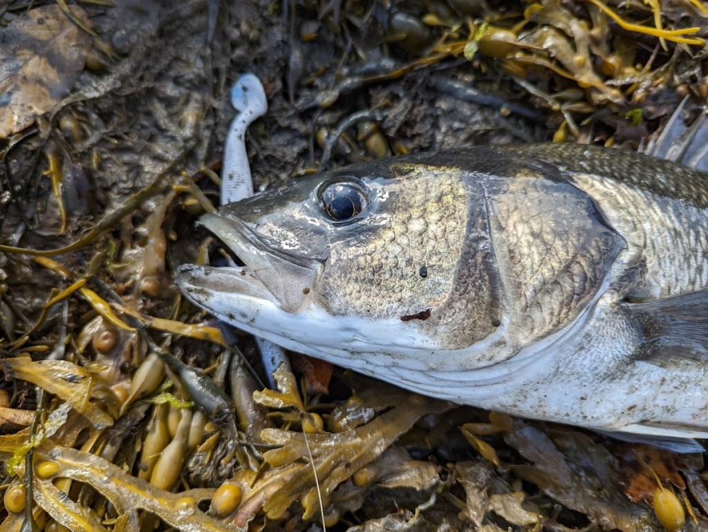 There will, almost inevitably, be a series of ‘caveats’ to the success I and we have enjoyed whilst fishing with the white soft plastic lures in bright sunshine. I touched on one of them (the pace of the tide) whilst describing Matt’s 4lb bass above, but one of the others that forms one or more of my hypothesis in regard to white lures, which, I hasten to add, might be as simple as to ‘fish a bright lure in bright conditions, and a dull lure in dull conditions’ or it might not, is that of attaining a predatory response from a bass – especially one that you have ‘sighted’.