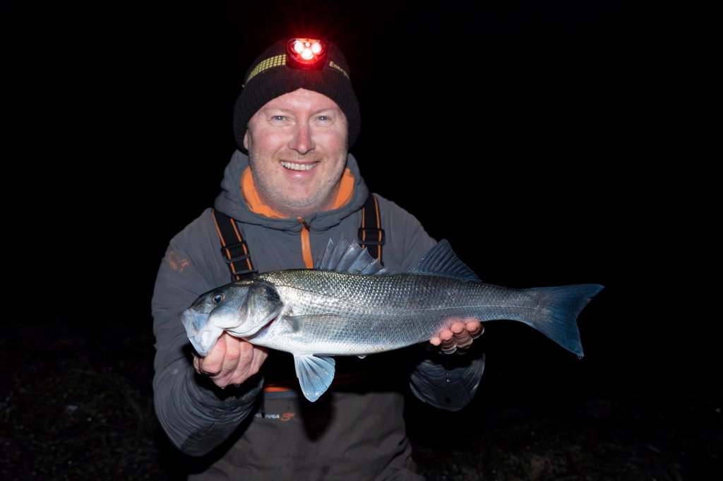 There were bass around for sure, which was why as soon as the opportune conditions presented themselves again I was hard at it – in darkness only as I was spending each and every daylight hour sanding, preparing and painting the barn conversion that we’d purchased and moved into the previous October. Three bass on my fourth session of January, with the largest at a very respectable 57cm (the 4.5lb fish below) was ‘payback’ for the one I’d lost early in the month, with these fish the forerunners for what would be a successful mid-month period in which I went on to land fifteen bass in eight sessions.