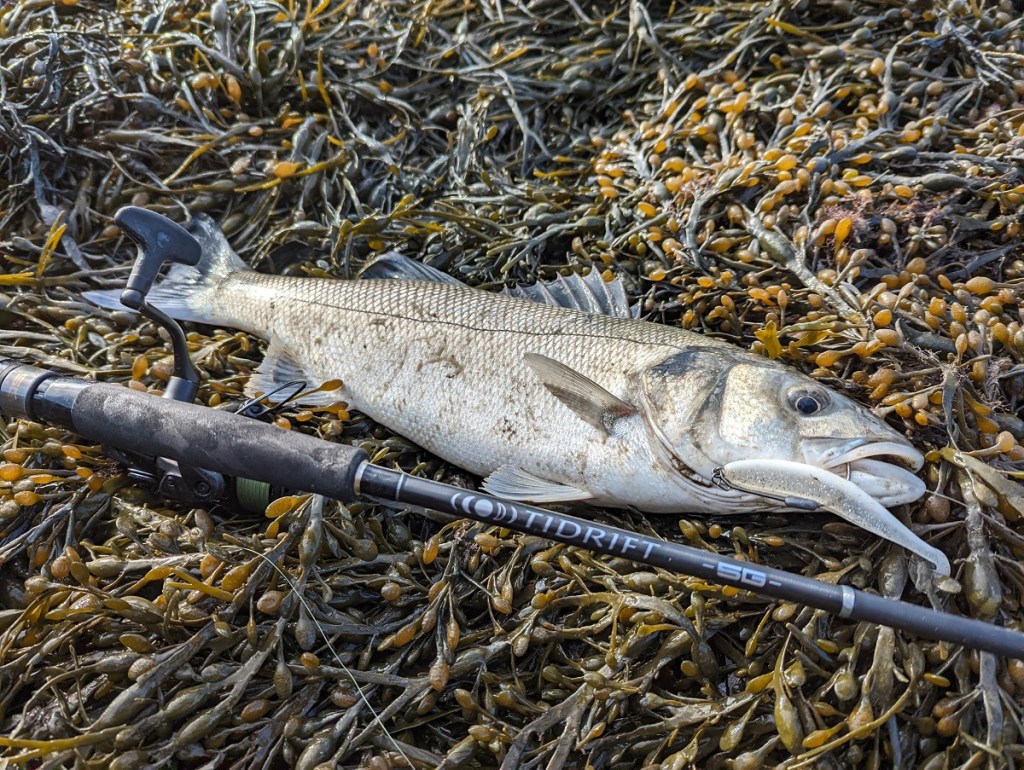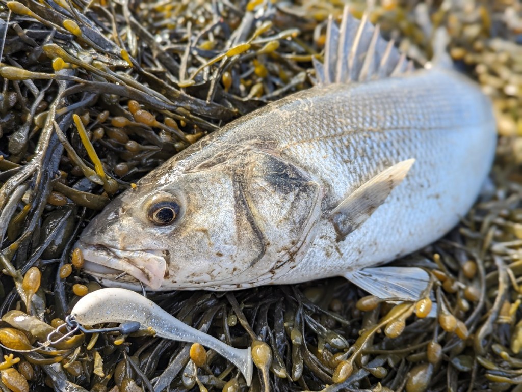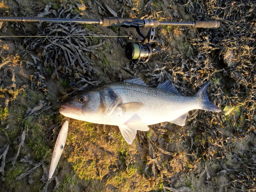 Prior to the weather going completely to pot, and to be fair the long overdue wet and windy spell set in, I did manage to land the nice ones above – the bass in darkness taking a lure that I believe will become another classic: the newer, smaller, 120mm 12g Savage Gear Gravity Sticks (the Pulse Tail in white), with the ‘sunshine bass’ walloping an IMA Chappy 80 in amongst the wrack if my memory serves me correctly.