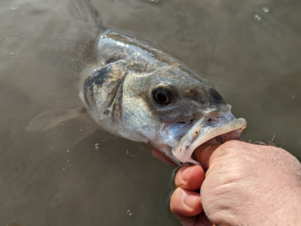 Right on cue. Within 48 hours of the sea temperature approaching that seemingly magic figure towards the final days of April, and a trip down to a craggy headland that enables me to access a vicious run of tide, saw me latch into what is a very respectable bass ‘off the top’ from the open coast this early in the year. At around 4lb, I was chuffed with this one, as again, it confirmed to me that the various indicators for potential bass behaviour that I lean on can be extraordinarily accurate. The blog post I wrote ‘Bouncing For Bass‘ depicts my mid-spring adventures if you fancy a more insightful read.
