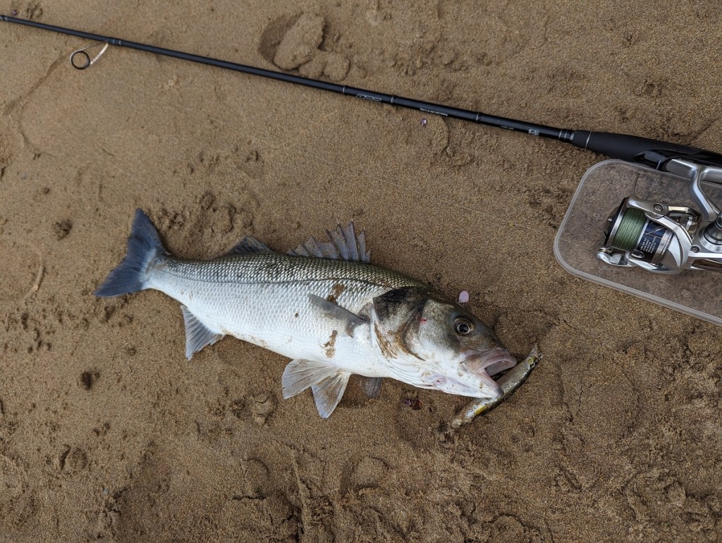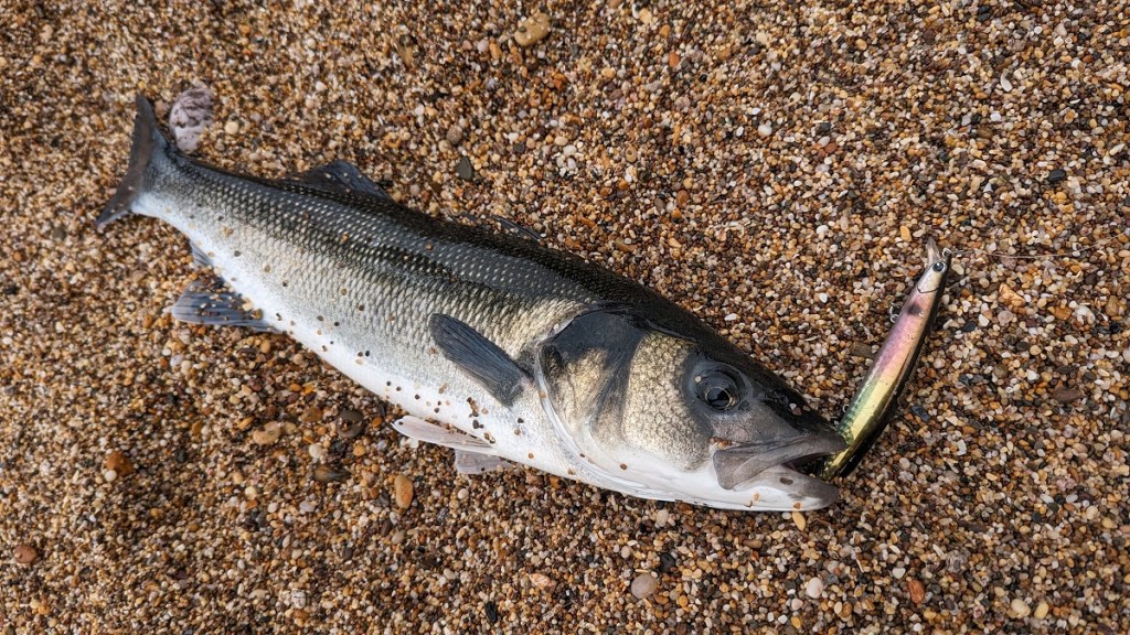 When I say a ‘significant number’, what I should really be saying (writing) is that in comparison to recent years, say, since 2017, where my inner-estuarine incursions and night lure fishing escapades have overtaken my daylight, ‘rough ground and equally rough sea’ endeavours, the humble hard minnow has most definitely made a bit of a comeback of late… Here’s one for me (below) that walloped the IMA Sasuke 95F in Bora (here) during a dawn session when only something representing the sprat/whitebait they were fixated on would appeal.