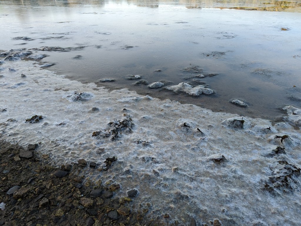 Secondly, I vividly recall sections of ice floating down the estuaries in December 2022, as well as swathes of foreshore being frozen solid (see below), plus, the sea temperature took quite a dive to 9.1oC before recovering again into January 2023. Associated to my theorem, is that the sea temperature rose very slowly in April following nothing remotely approaching sunny and warm as we had enjoyed in March 2022 when the sand smelt population went through the roof, and the number of bass corralling them were equally impressive in both numbers and size.