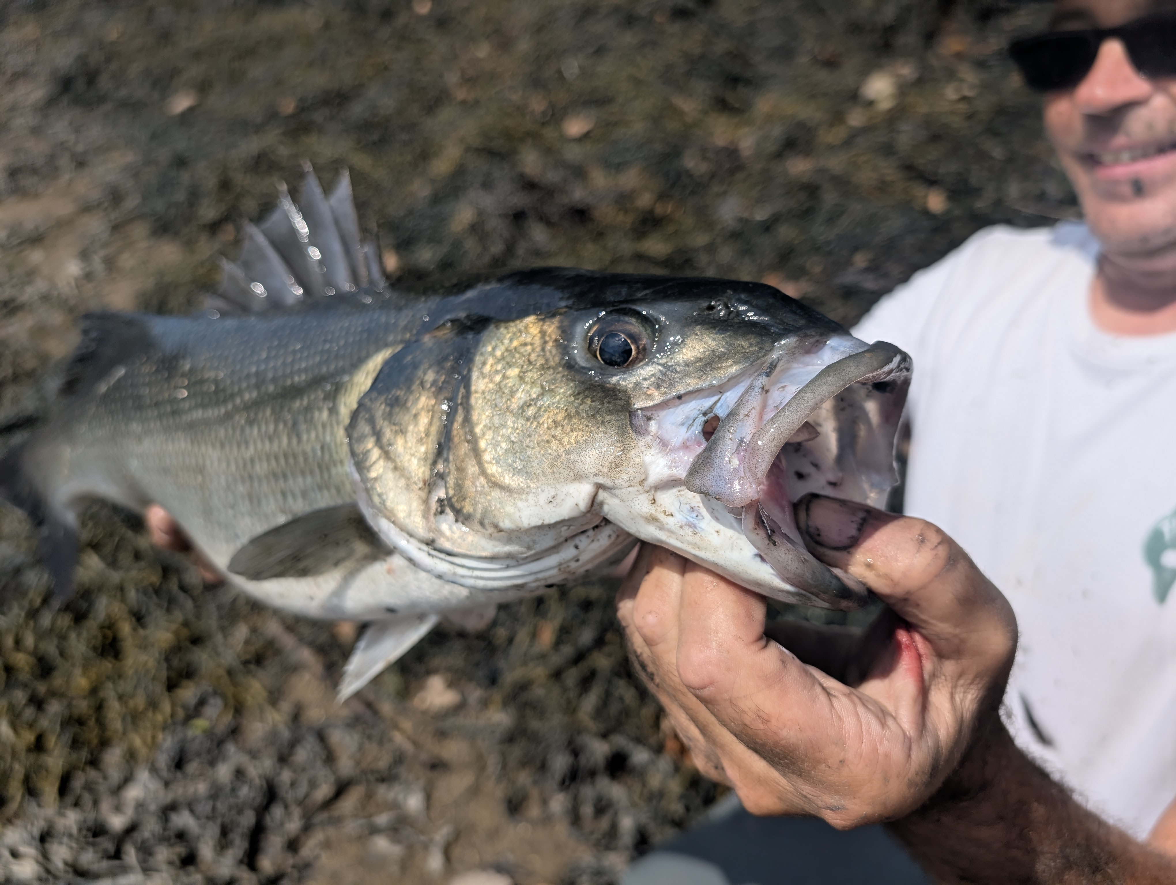 It was for this reason, in addition to the fact that there copious levels of ‘bait fish’ within the margins being sporadically preyed upon by our spikey friends, that I asked Ryan to attach the famed Patchinko 100 – the thought being the bass were clearly hunting by sight at this juncture.