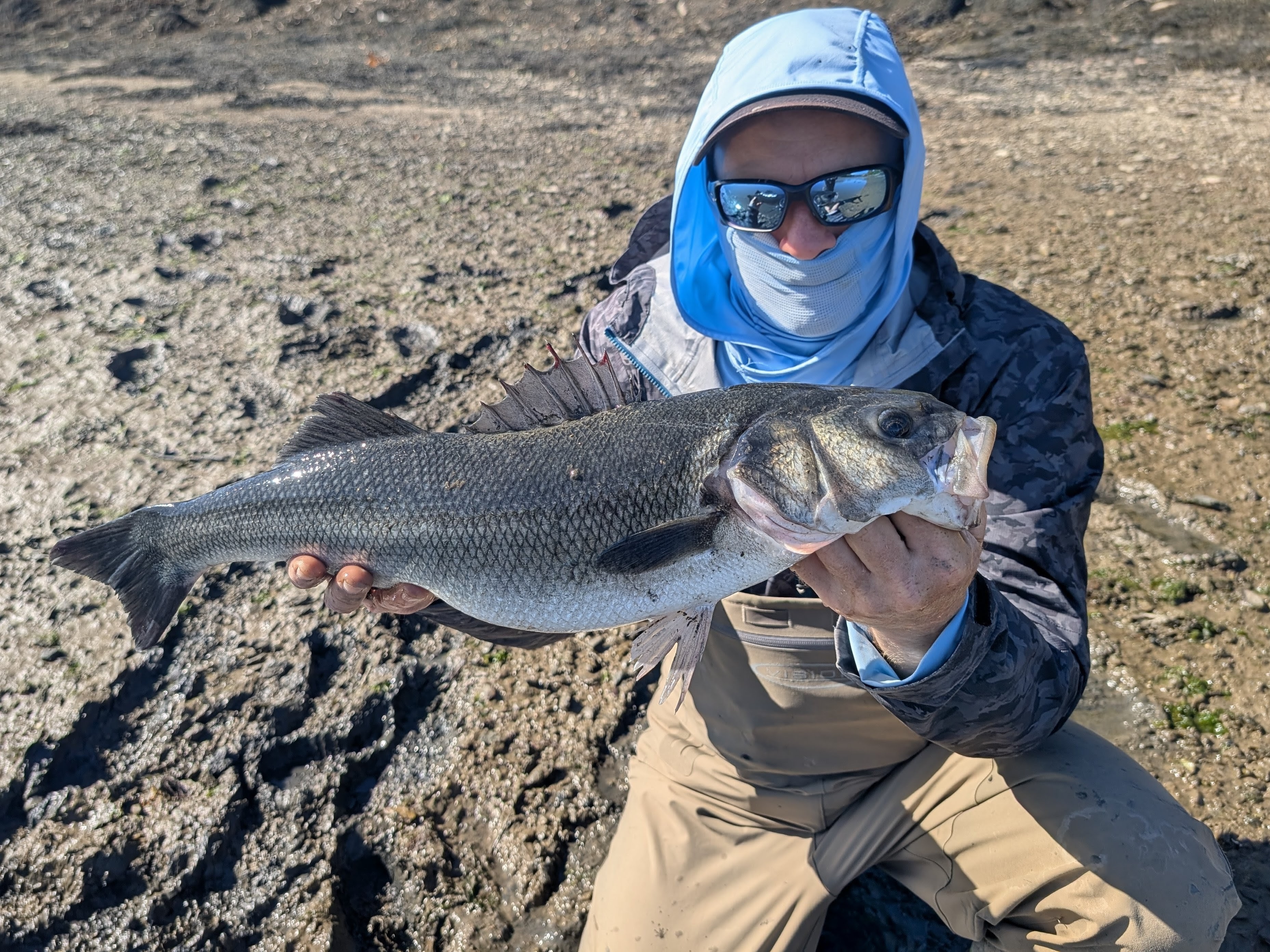 Next up, is what I would describe as the ‘Overpowered’ notion in relation to immature fish movement, one that I will describe in the Audio Clip below the photograph of a rather covered up Ian – the Sun was baking down that day it has to be said!
