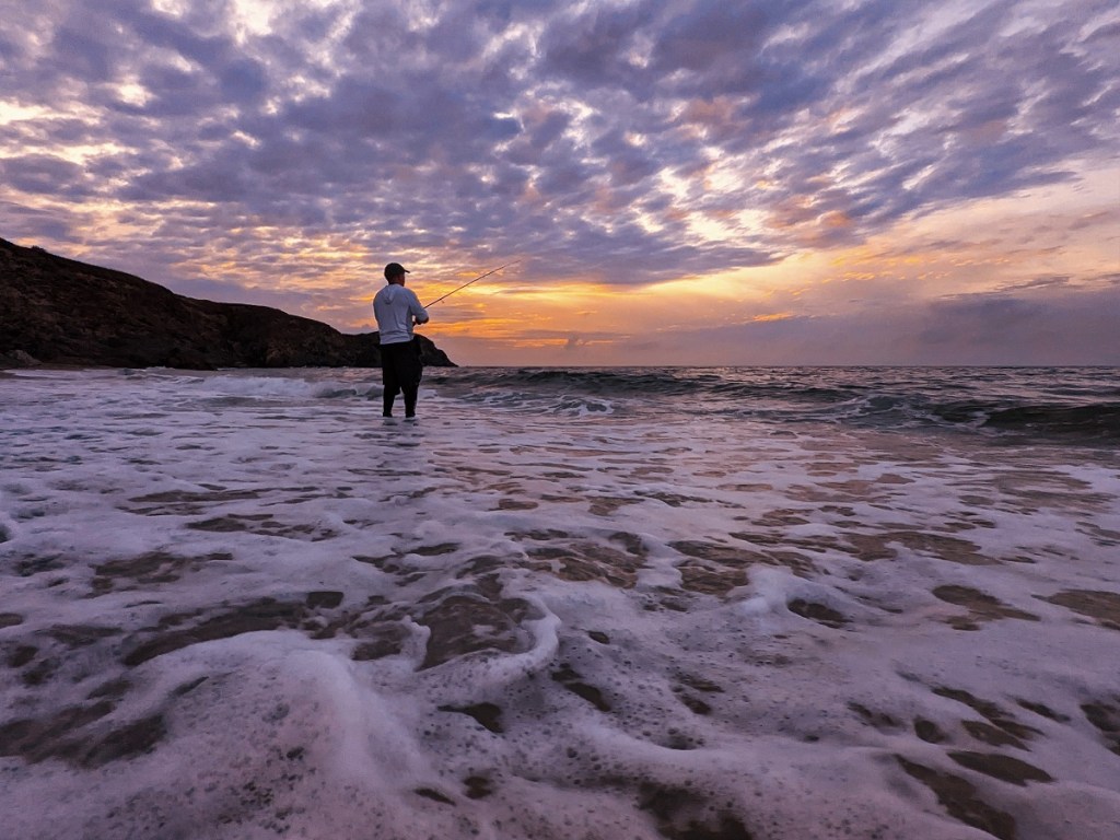 So with this in mind, a decision was made for Joe to guide them out on the open coast given that the waves, swell, water clarity, times of high and low tide, plus the overhead conditions (cloudy and dull) all pointed towards fishing a remote, rugged, and rock/sand beach.