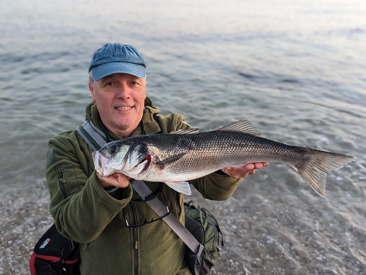 Fishing was hard going as the Bass were playing hard to get which can happen anywhere. But in the end we all caught and I ended up with a cracking Bass at 58 cm